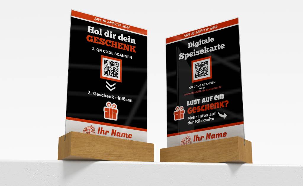 Verwandeln Sie Ihre Laufkundschaft in Stammkunden und erhöhen Sie Ihren Umsatz durch die Kundenbindung mit Hilfe der QR-Code-Tischaufsteller!